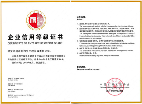 水利水電工程施工企業(yè)AAA信用等級證書