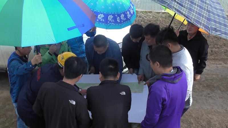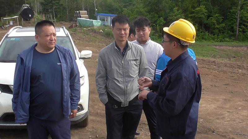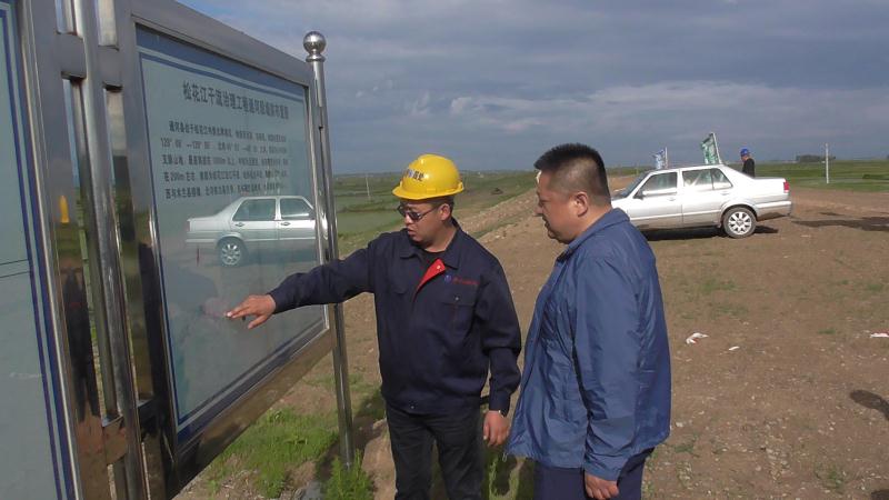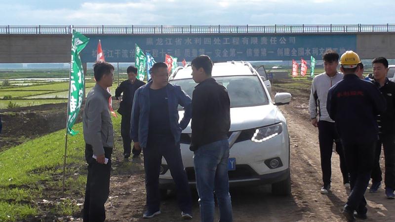 6月10日,在濛濛細(xì)雨中,松花江處工程總指揮陳振忠一行蒞臨松干十三標(biāo)視察指導(dǎo)工作。