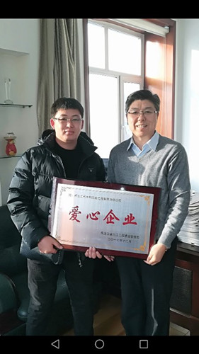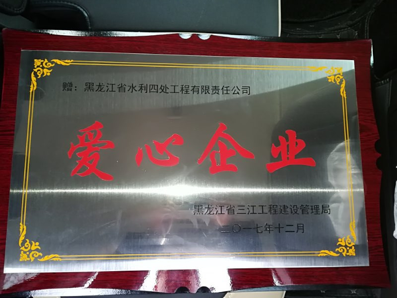 近日,從黑龍江省三江工程建設(shè)管理局傳來喜訊,我公司被授予“愛心企業(yè)”稱號。黑龍江省三江工程建設(shè)管理局黨委書記王波親自為我公司頒發(fā)了獎牌,郭純寶同志代表公司參加了授牌儀式。