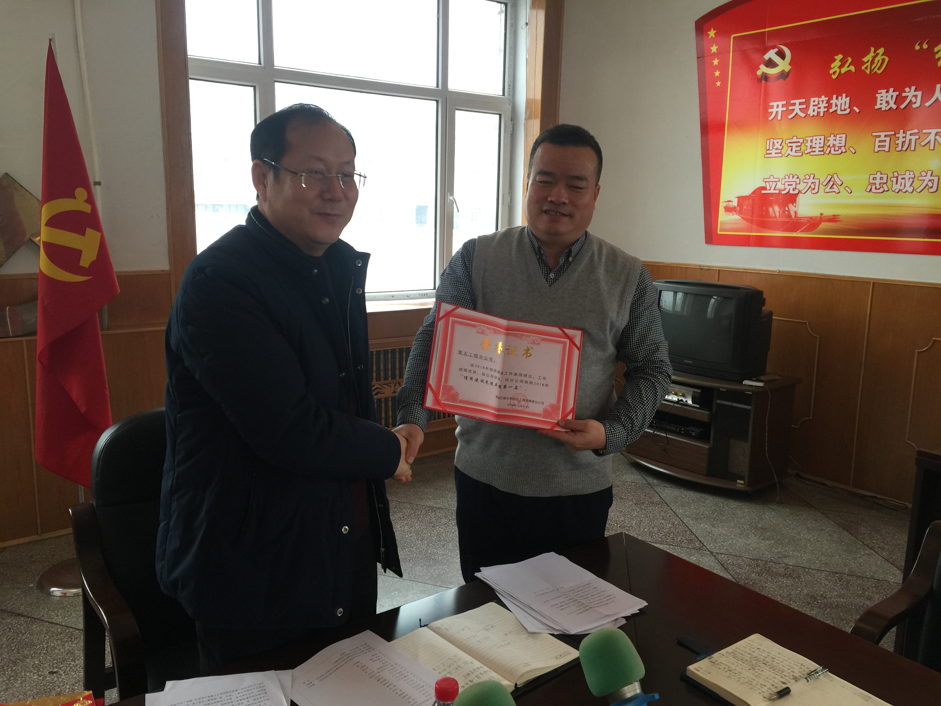 會上,各工程分公司匯報了一年來生產經營的工作情況;公司各職能部門通報了有關工作情況,并就加強生產經營工作提出了具體工作要求;命名表彰了2018年信用建設先進單位(第五工程分公司、第二工程分公司、第三工程公公司)和公司機關“優(yōu)秀員工”(王文娟、于潔、孫聰、張健、崔志禹、叢玉香);宣讀了劉波同志任公司總經理的任命文件;公司董事長李景國同志發(fā)表了重要講話。
