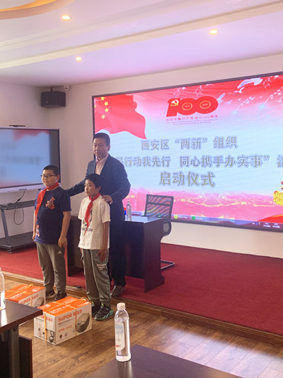 返回市區(qū)在黨群服務(wù)中心舉行“惠民行動(dòng)我先行、同心攜手辦實(shí)事”——西安區(qū)“兩新”組織黨組織“我為群眾辦實(shí)事”系列活動(dòng)啟動(dòng)儀式,黑龍江省水利四處工程有限責(zé)任公司等3家企業(yè)代表為西苑小學(xué)6名貧困兒童現(xiàn)場(chǎng)捐贈(zèng)了物資。