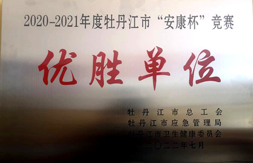 2022年7月8日,我公司榮獲牡丹江市2020-2021年度安康杯競(jìng)賽“優(yōu)勝單位”榮譽(yù)稱號(hào),標(biāo)志著我公司安全工作取得可喜成效。