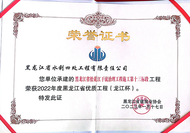 黑龍江省優(yōu)質(zhì)工程(龍江杯)獲獎(jiǎng)證書
