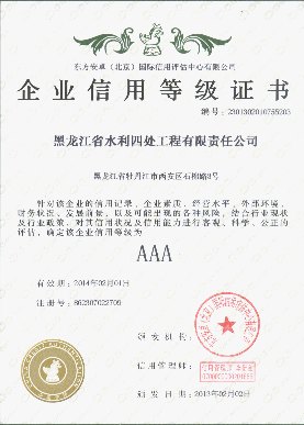 上一篇:水利水電工程施工企業(yè)AAA信用等級(jí)證書(shū)