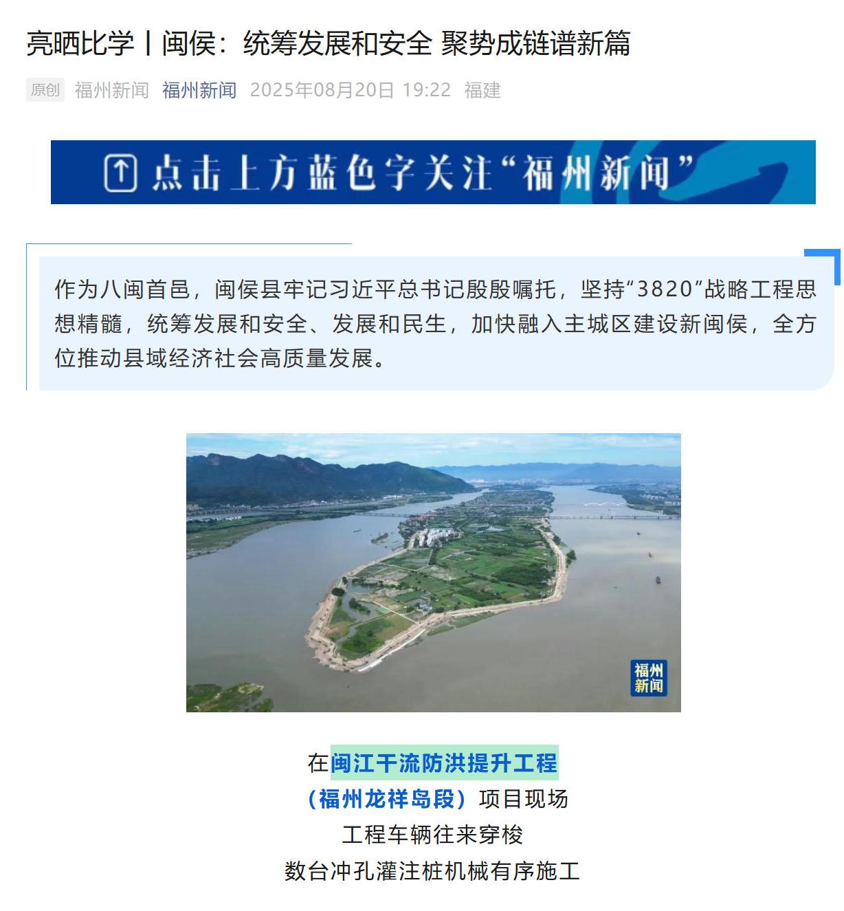 新聞報道我公司承建的閩江干流防洪提升工程